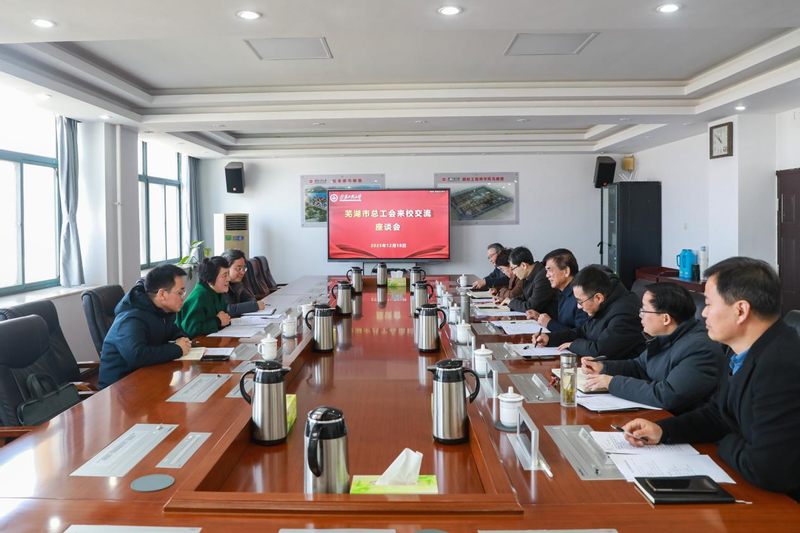 本网讯 12月18日,芜湖市一级巡视员、市总工会主席董萍一行来校调研交流。校党委书记卢平,校党委副书记郑健出席。市总工会和学校有关部门负责人参会。