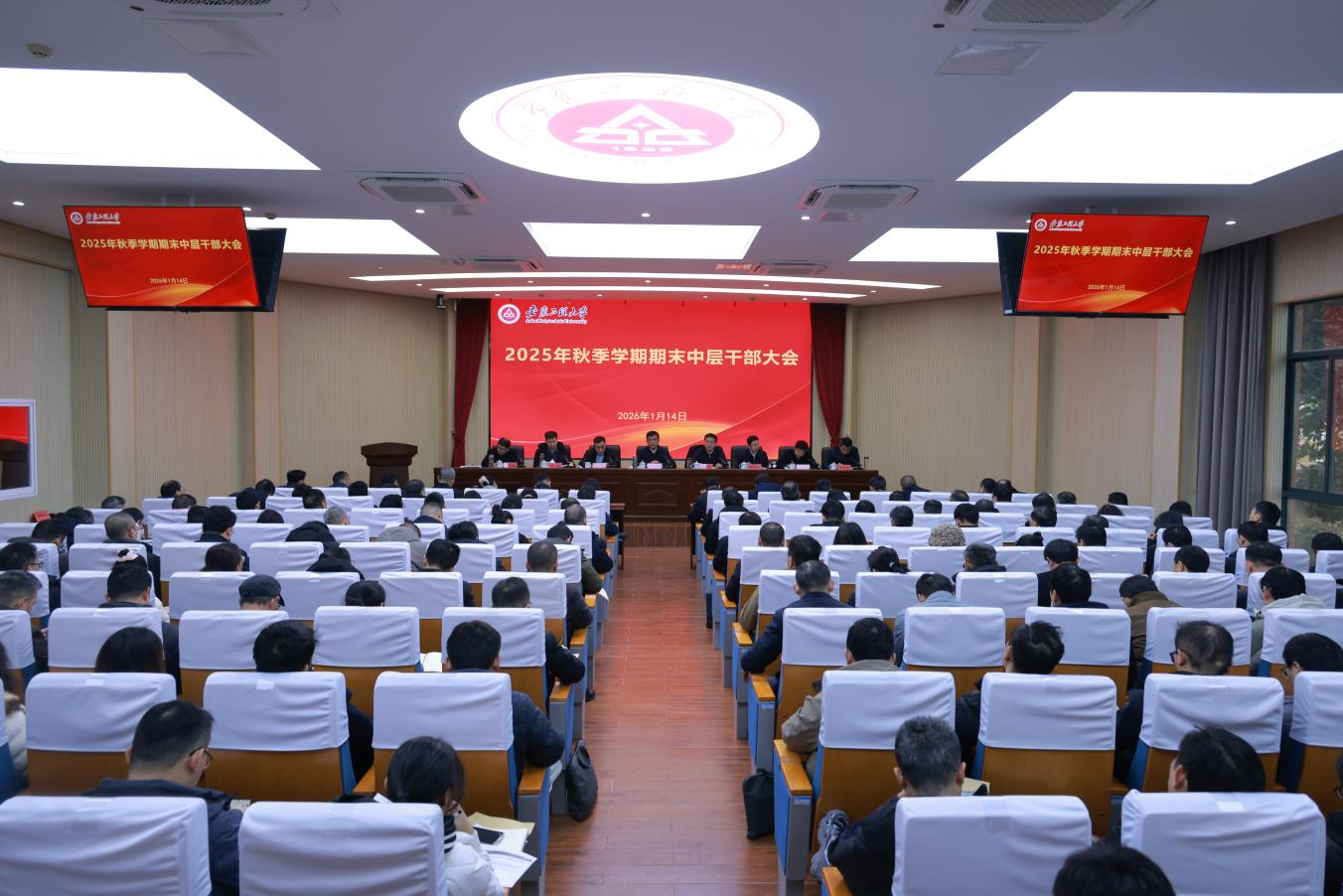 114日,学校在行政楼104会议室召开2025年秋季学期期末中层干部大会党委书记卢平,党委副书记、校长黄友锐,校领导郑健、程双四、凤权、张开炳王成军、高彦峰出席会议,全体中层干部参加会议由校党委副书记郑健主持。