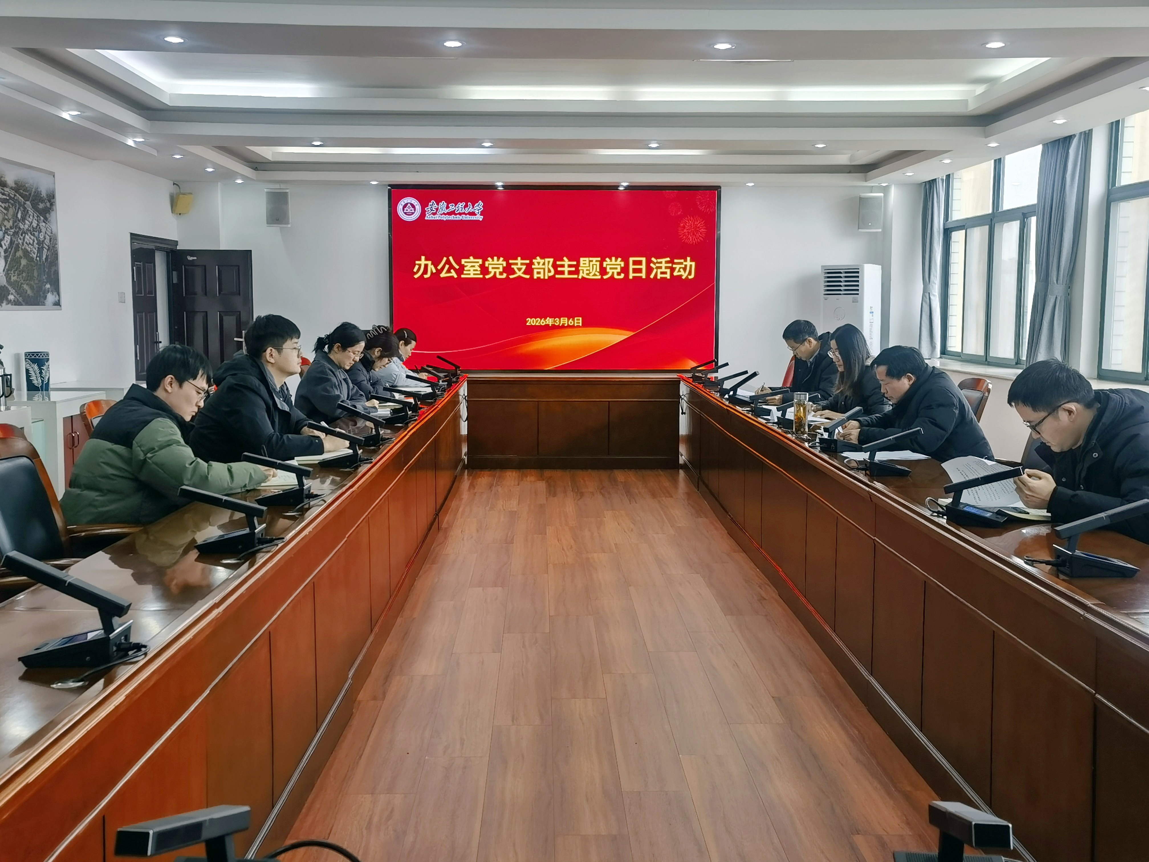 3月6日下午,办公室党支部召开党员大会,组织集中学习,并就树立和践行正确政绩观学习教育工作进行动员部署。会议由支部书记朱洪浪同志主持,支部全体党员参加会议。校党委组织部副部长、机关党委副书记朱文明同志到会指导。