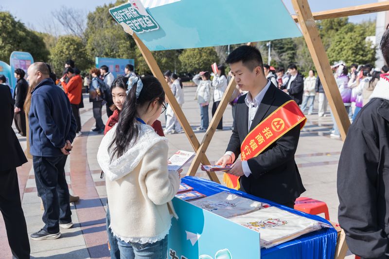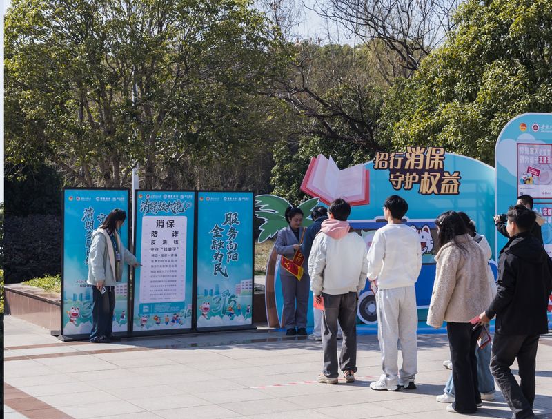 本网讯 3月13日,学校联合共青团芜湖市委、芜湖市银行业协会、招商银行芜湖分行等单位在学校“一站式”学生社区青年广场开展“3•15”校园金融反诈宣传活动。校党委副书记、校长黄友锐,共青团芜湖市委书记谢翔宇,芜湖市银行业协会秘书长方克敏,招商银行芜湖分行行长罗巍,学校相关职能部门负责人参加。活动吸引了400余名师生参与,现场气氛热烈。