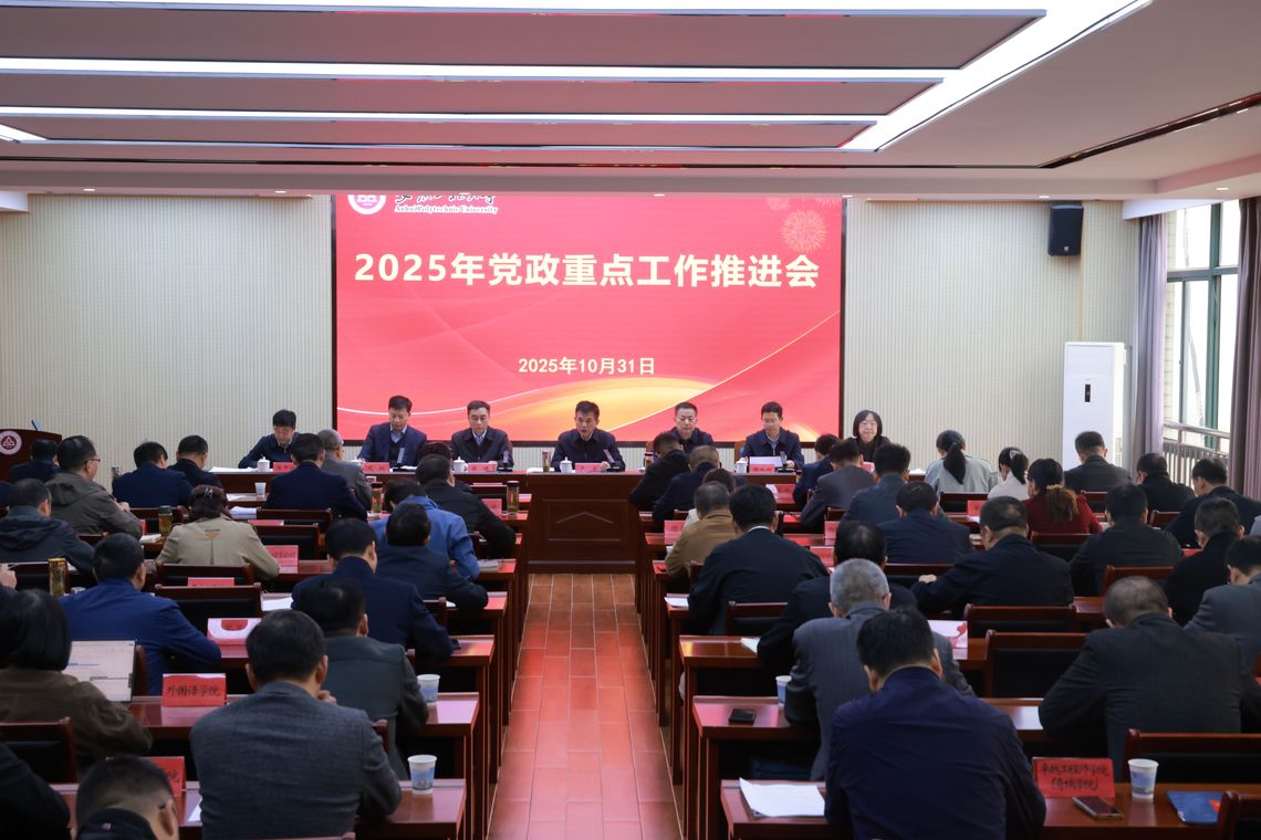 10月31日,学校在行政楼1314会议室召开2025年党政重点工作推进会。校领导卢平、黄友锐、郑健、程双四、凤权、周虹屏、张开炳出席会议,各部门主要负责同志、二级学院党政主要负责同志参加会议。会议由校党委书记卢平主持。卢平强调,各级领导干部要提高站位,强化“人人讲担当”的责任意识,做到“在位敢为、在位先为、在位有为”,把履职尽责、敢于担当作为自觉追求,真正转变工作作风,做到知实...