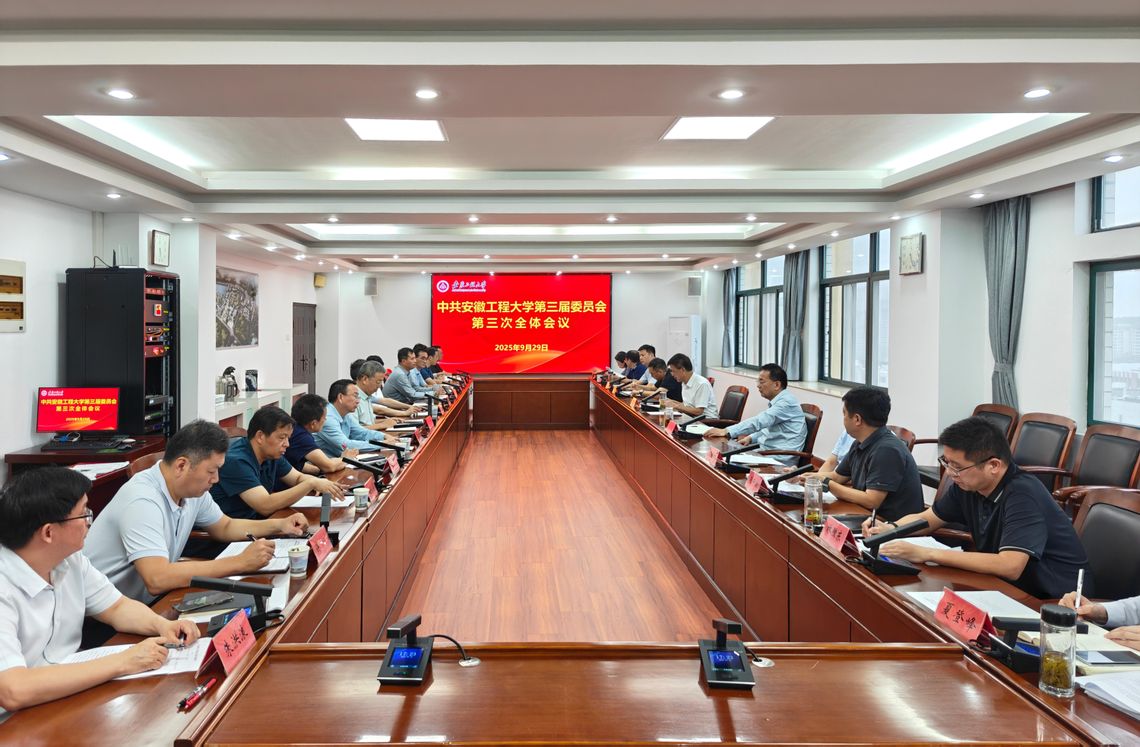 9月29日,中共安徽工程大学第三届委员会第三次全体会议在行政楼1215会议室召开,传达学习习近平总书记关于全面深化改革的重要论述和考察安徽重要讲话精神,传达学习9月24日省委常委会会议精神、省级层面学习教育工作专班相关通知,紧密结合学校实际,研究部署贯彻落实举措;审议安徽工程大学第三届教代会、工代会校长工作报告。校党委领导班子成员、校党委委员参加会议,非党员校领导、办公室主要...